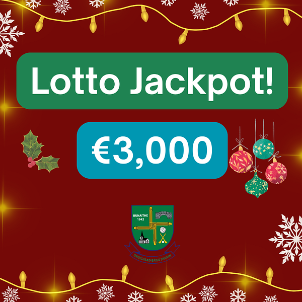 Have you bought your ticket yet? Our club lotto this weekend now stands at €3,000!